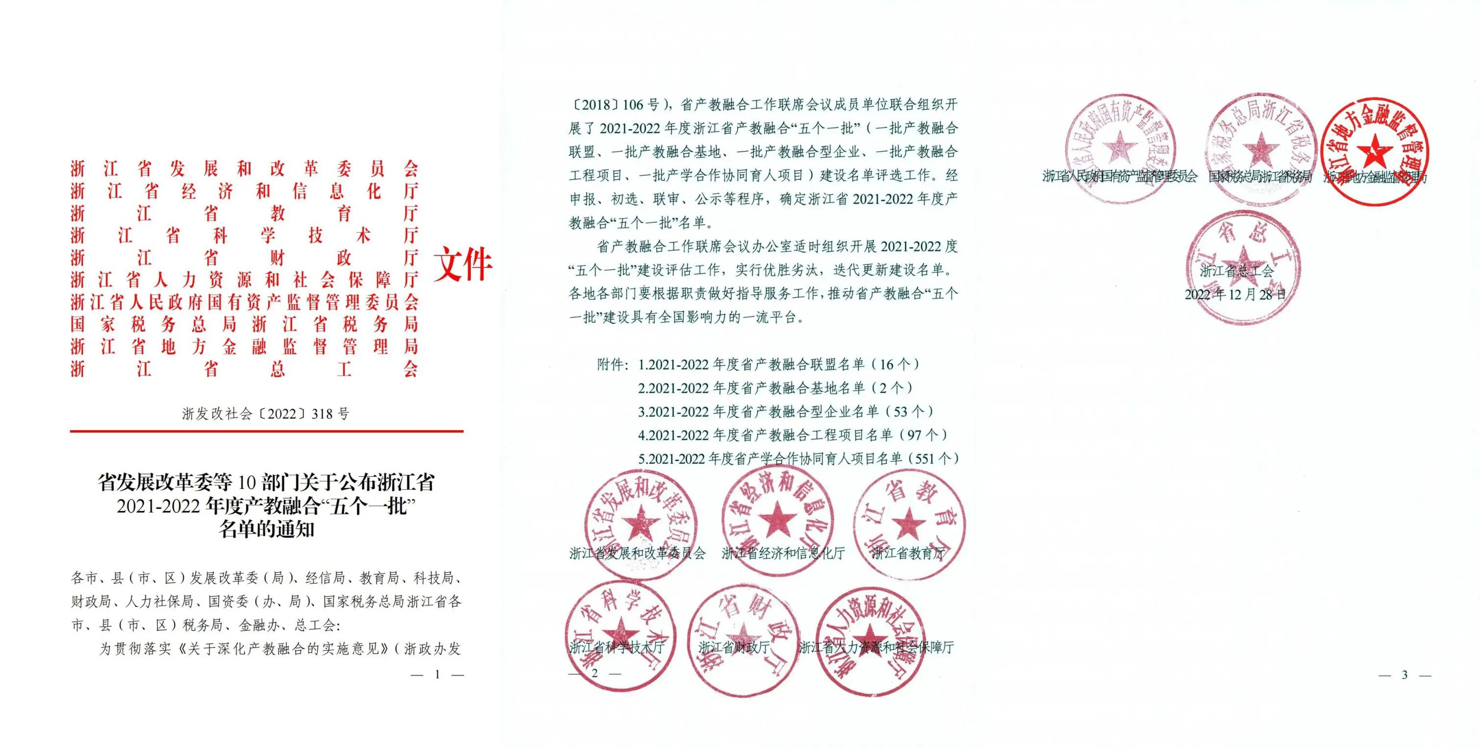 ¿ËÈÕ£¬Õã½Ê¡Éú³¤Ë¢ÐÂίµÈ10²¿·ÖÓ¡·¢¡¶¹ØÓÚÐû²¼Õã½Ê¡2021—2022Äê¶È²ú½ÌÈںϓÎå¸öÒ»Åú”Ãûµ¥µÄ֪ͨ¡·£¬97¹ú¼ÊÀÖ³ÉÈëÑ¡“2021—2022Äê¶ÈÕã½Ê¡²ú½ÌÈÚºÏÐÍÆóÒµ”Ãûµ¥£¡